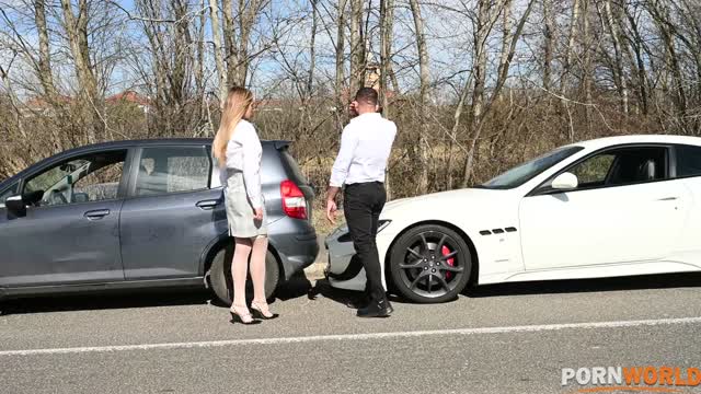 Blonde Babe Ria Sunn Takes Airtight DP Slamming After Car Crash