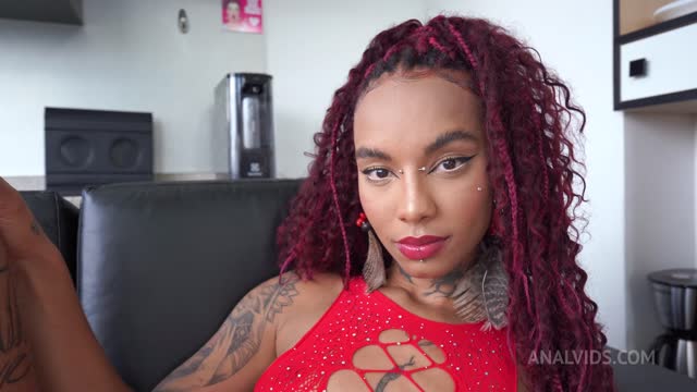 Lara Rouge, Brazilian goth ebony beauty, first time with 2 guys & first double anal (DAPBreakin, DAP, Anal, 2on1, black woman) OB597