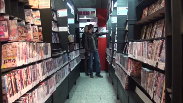 Cali, belle blonde gourmande, reve de se faire baiser dans un sex-shop!