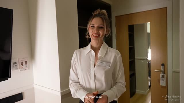 Shy young hotel maid gets fucked by pervert hotel guest for money