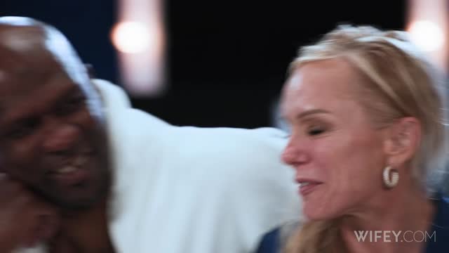 Beautiful blonde Anikka Albrite deep throats 10 inch BBC, tag teamed by 2 cocks, cums helplessly!